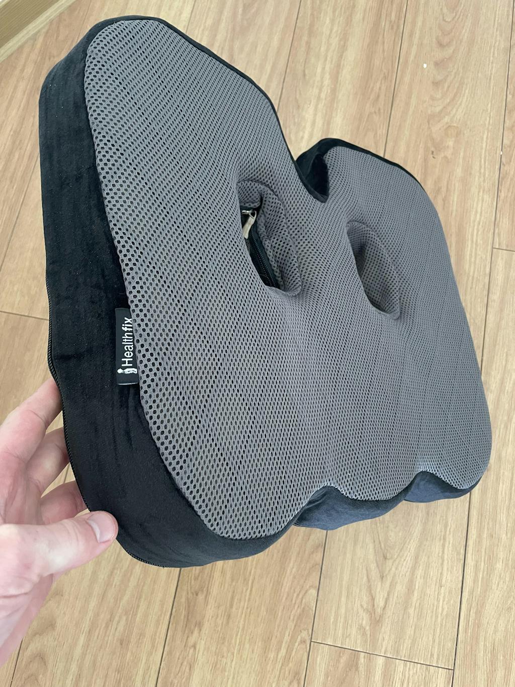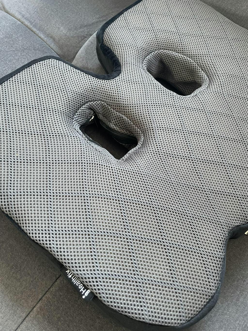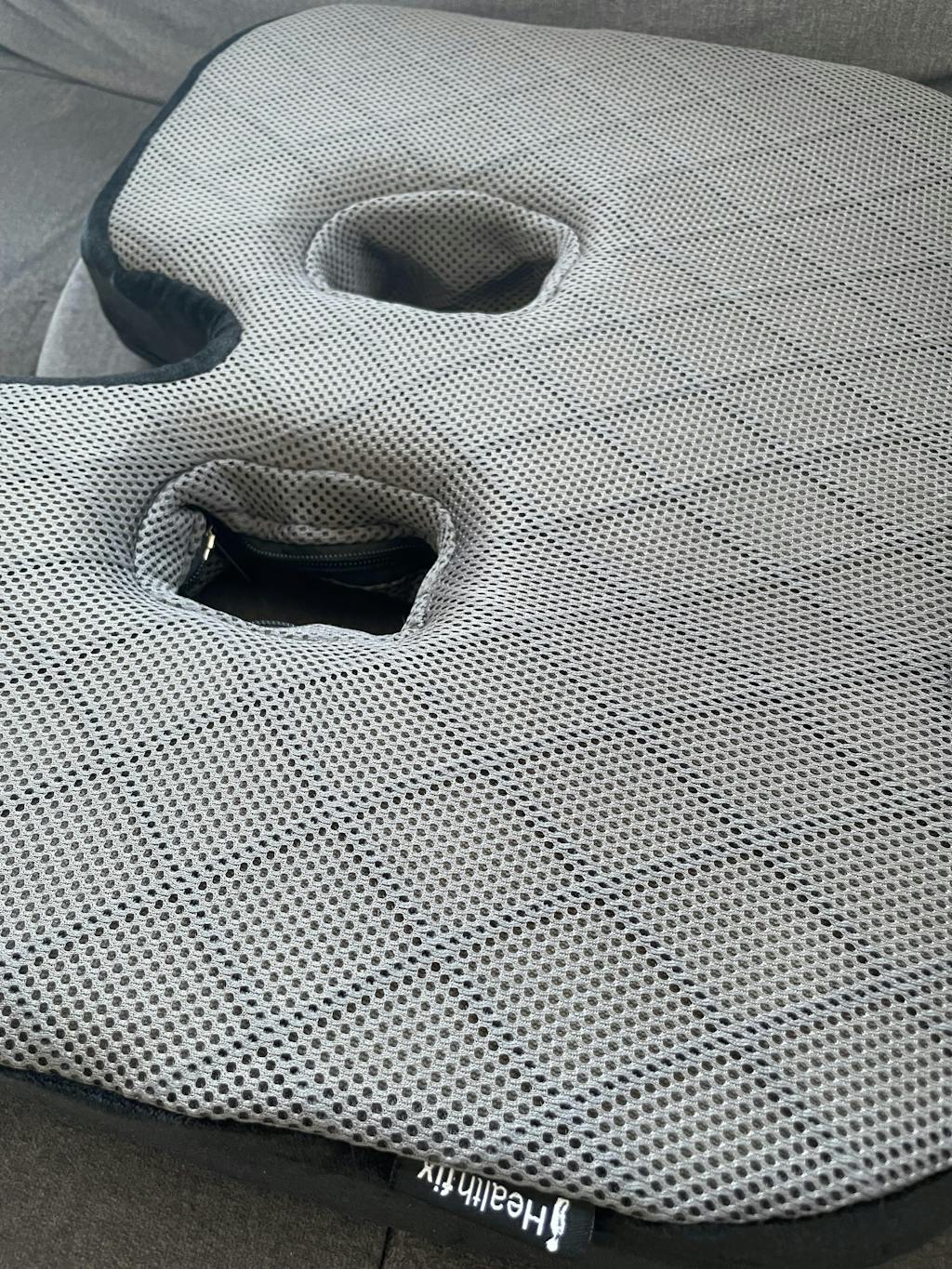 Das Healthfix Sitzkissen bietet durch die beiden mittigen Aussparungen Abhilfe, da das Körpergewicht gleichmäßig auf die umliegenden Bereiche verteilt wird.